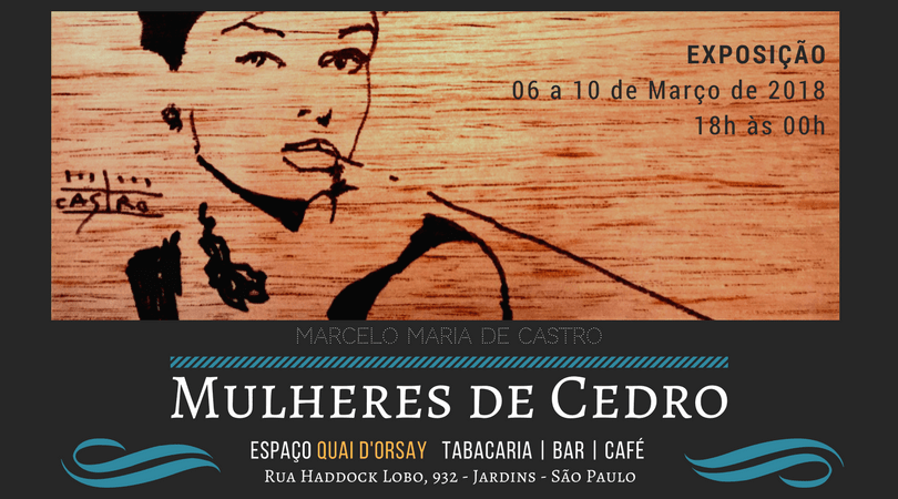 Em homenagem ao Dia Internacional da Mulher, o Espaço Quai D’Orsay Tabacaria | Bar | Café promoverá na semana de 05 à 10 de Março / 2018 uma exposição do artista plástico Marcelo Maria de Castro.
