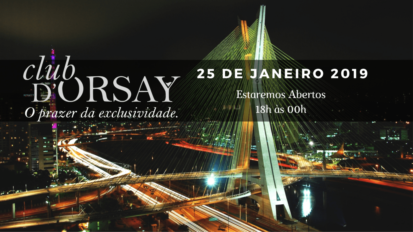 O Club D’Orsay estará aberto nessa sexta feira, 25 de Janeiro – Aniversário da Cidade de São Paulo, das 18h às 00h.