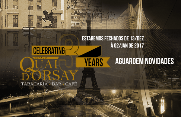 A sofisticação de sempre, agora com muito mais conforto e exclusividade. Sempre pensando em atender as exigências de um seleto publico apreciador de charutos, o Espaço Quai D'Orsay Tabacaria | Bar | Café chega em 2017 com muitas novidades para celebrar 3 anos de muito sucesso no endereço mais charmoso de São Paulo! Novo Site... Continuar Lendo →